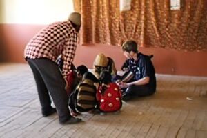 The following morning, we started day two of our optical project. It was an extremely busy day in the community. They had two buildings that we could use, one for